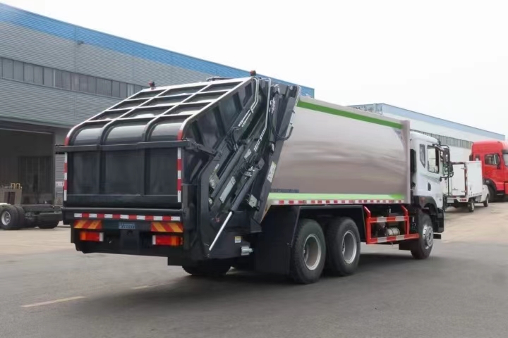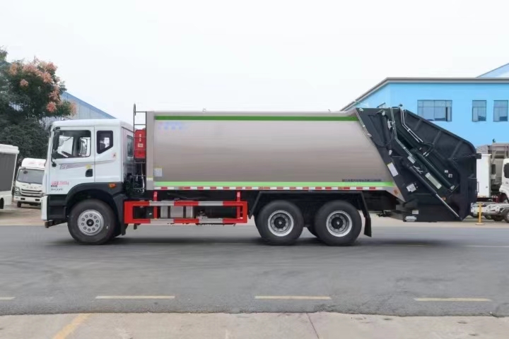 | 上裝配置 | 新款弧形箱體,箱體容積加大約22立方,箱體為優質高強度Q345錳鋼制作,底箱及填充器采用加厚鋼板,耐腐蝕使用壽命長,三層油漆噴涂處理/電泳工藝。裝載循環以及垃圾排出時間快,上裝部分具備雙向壓縮和蠕動壓縮功能帶。新款結構加大填充器,手電一體操作模式,帶駕駛室操作,帶駕駛室一鍵卸料功能,尾部裝置可以選裝垃圾翻轉斗,掛桶翻轉板或者大落地斗。PLC/CAN總線控制方式,光電開關加延時雙系統控制,降低故障率,方便維修。帶夜間照明裝置,帶污水箱,標配選用:定制油缸(質保兩年),中梅多路閥,液壓油泵(雙泵雙閥),帶液壓散熱器,嘉善取力器。 | ||