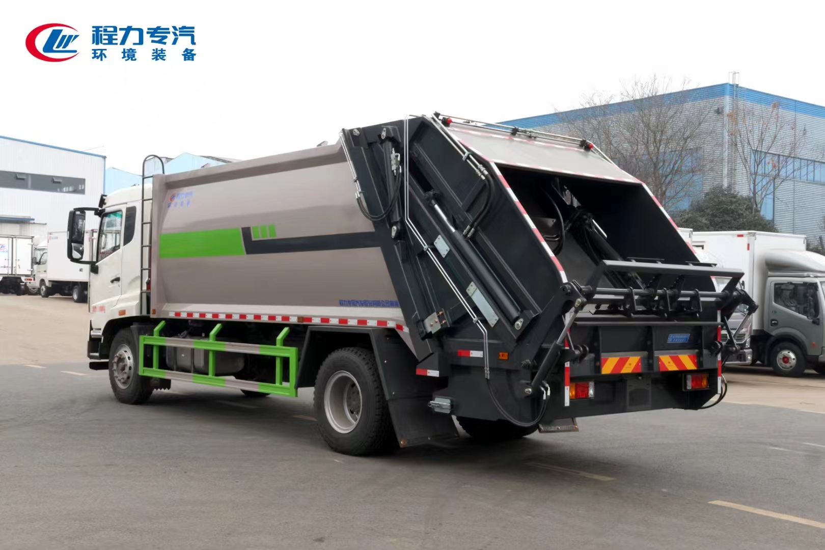 | 上裝配置 | 上裝為弧形箱體結(jié)構(gòu),采用Q345(局部采用T710)高強(qiáng)度板制作。有效容積15-18立方,采用中梅大通徑五聯(lián)手氣一體多路閥,全系標(biāo)配背壓閥(增加雙向壓縮比),合資鐵殼液壓齒輪泵,嘉善取力器,中梅手氣一體多路閥,恒力油缸(質(zhì)保兩年),加強(qiáng)型掛捅后翻轉(zhuǎn)機(jī)構(gòu)(可選裝三角斗、全密封斗、擺臂等翻轉(zhuǎn)機(jī)構(gòu)),外置滑板缸結(jié)構(gòu)設(shè)計,石墨烯尼龍滑塊,長沙福力CAN總線控制系統(tǒng),尾部帶有硅膠控制面板,標(biāo)配無線遙控,帶光電感應(yīng)保護(hù)裝置,標(biāo)配后污水箱,(中聯(lián)樣式雙排污口),可加裝側(cè)邊污水箱。加裝氣動密封蓋。 | ||